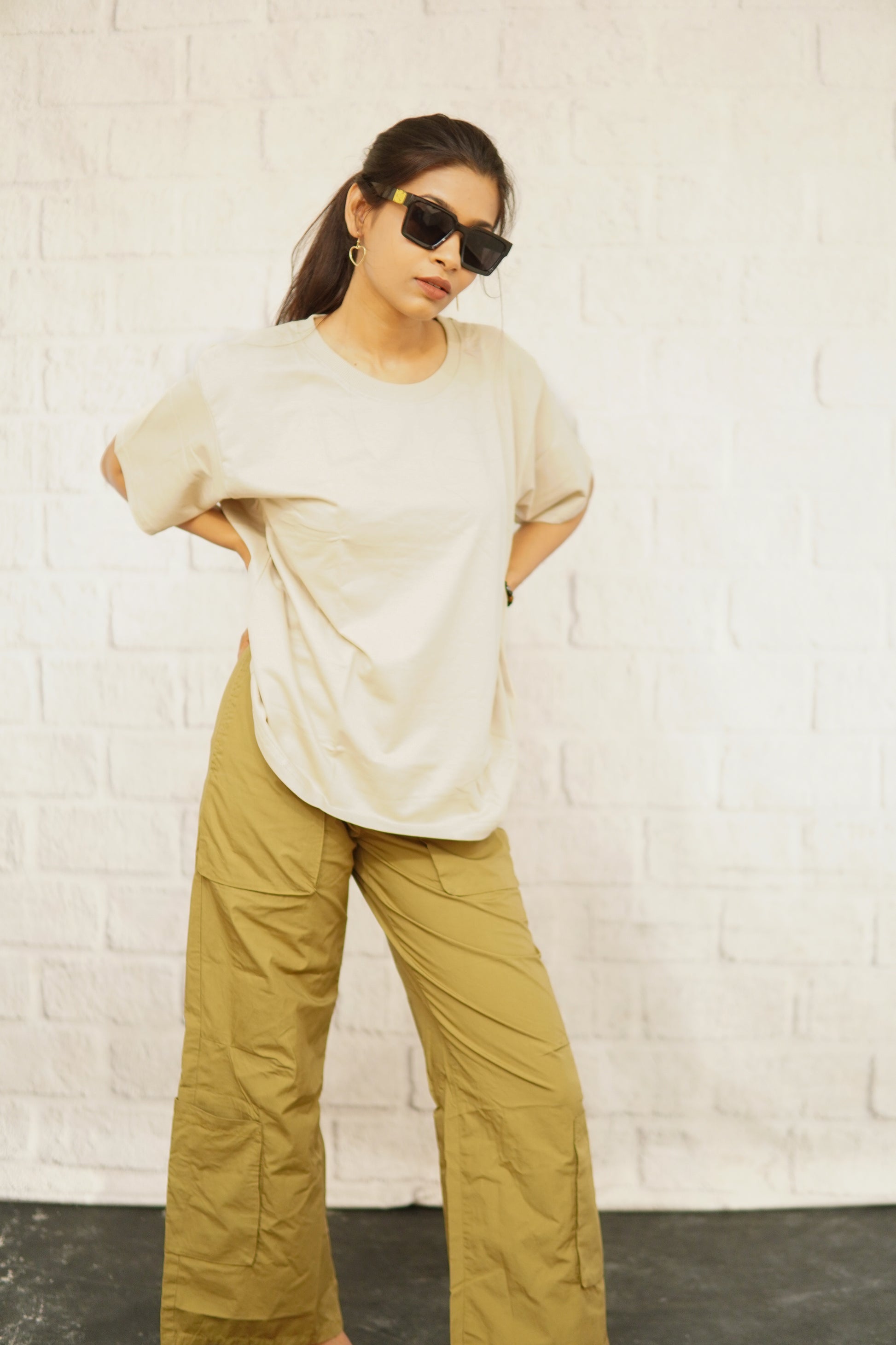 OVERSIZED COTTON BEIGE SOLID T-SHIRT